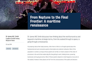 I discuss how thinking about the world around us and beyond in maritime strategic terms, from the seabed through to space, is going through a…