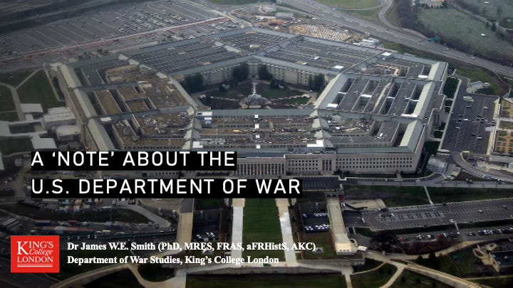 Having stated my credentials, this note reflects on the recent discussions in the United States regarding the renaming of the U.S. Department of Defense to the ‘Department of War’. I wish to point out, in brief, some salient points: