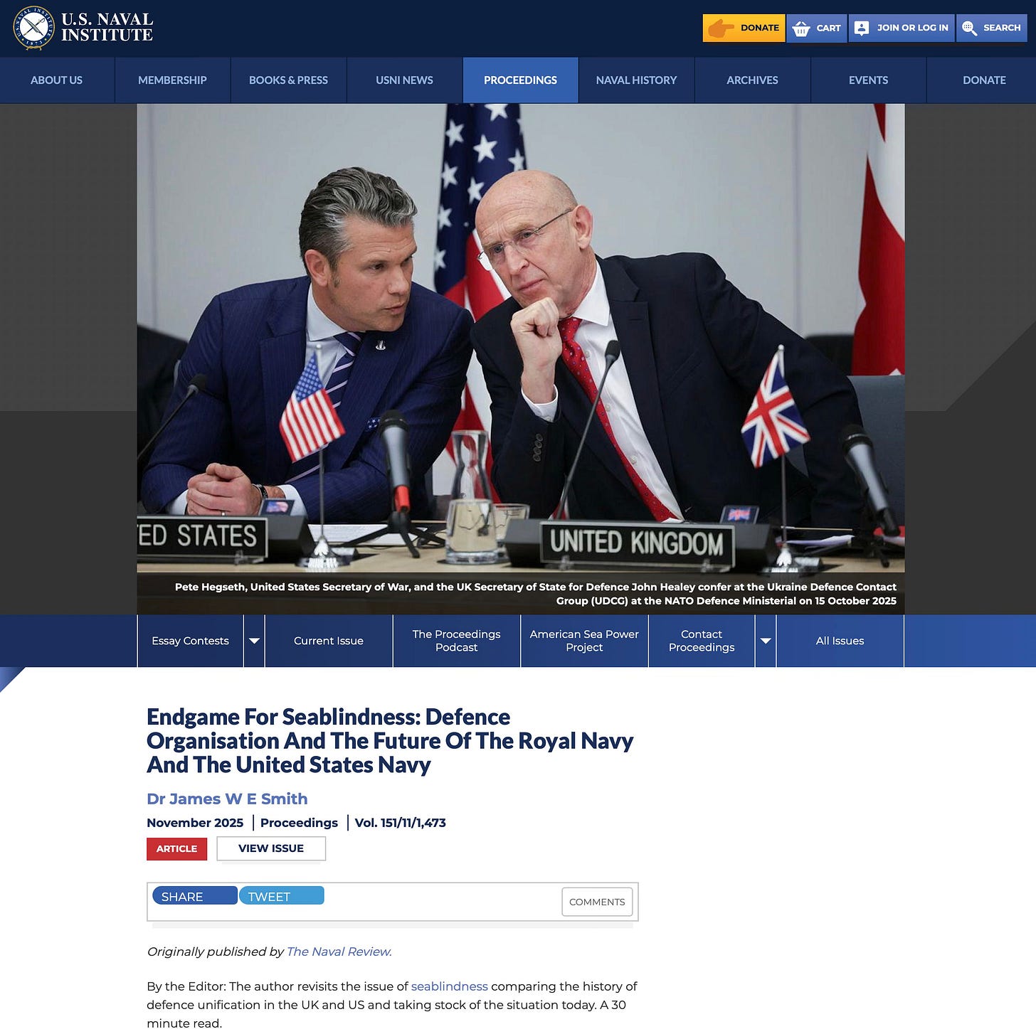 ‘Endgame for Seablindness: defence organisation and the future of the Royal Navy and the United States Navy.’