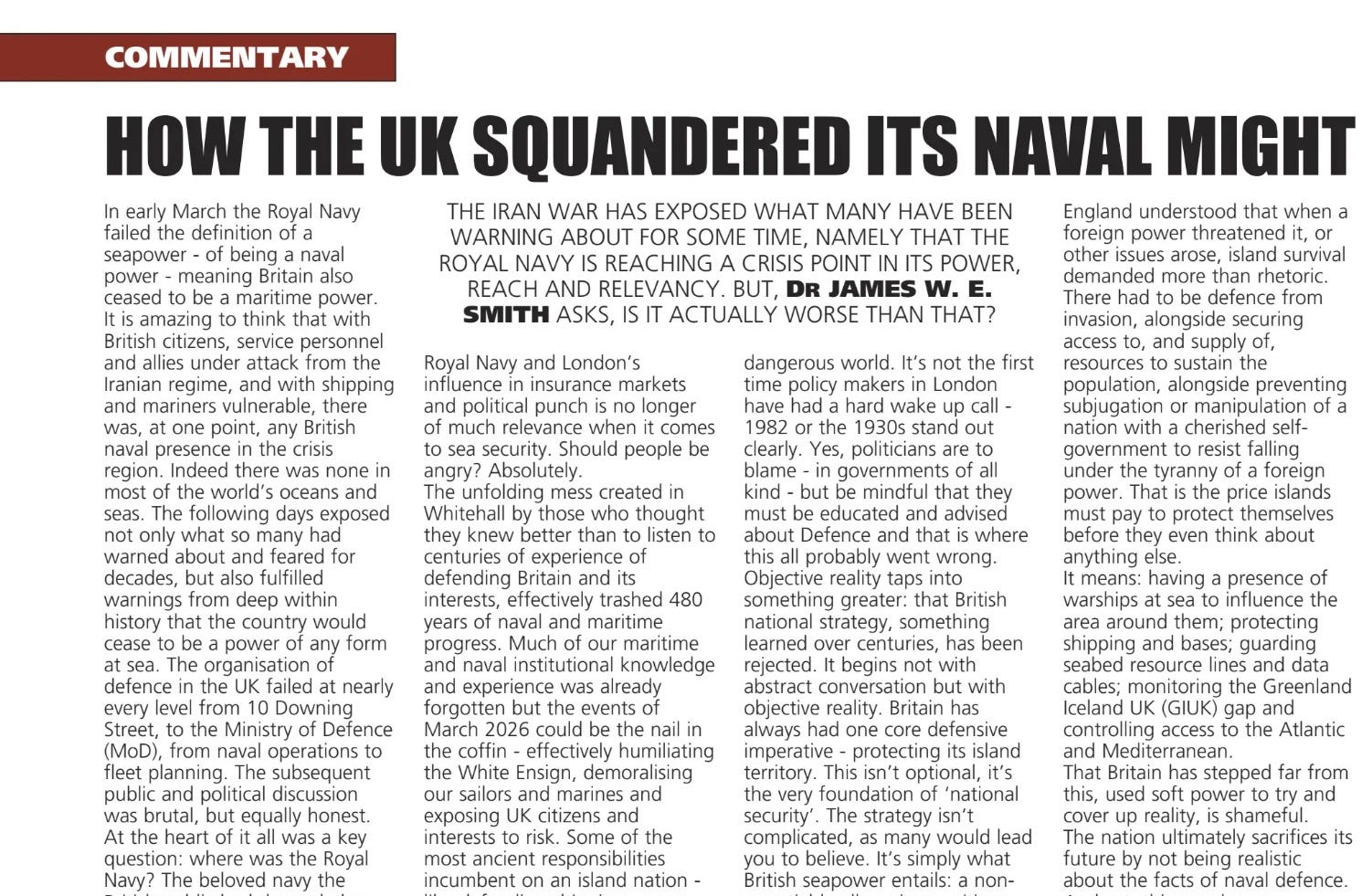 The 2026 Iran Crisis has exposed what many feared about the state of the Royal Navy but Dr James WE Smith, argues it's far worse than that.