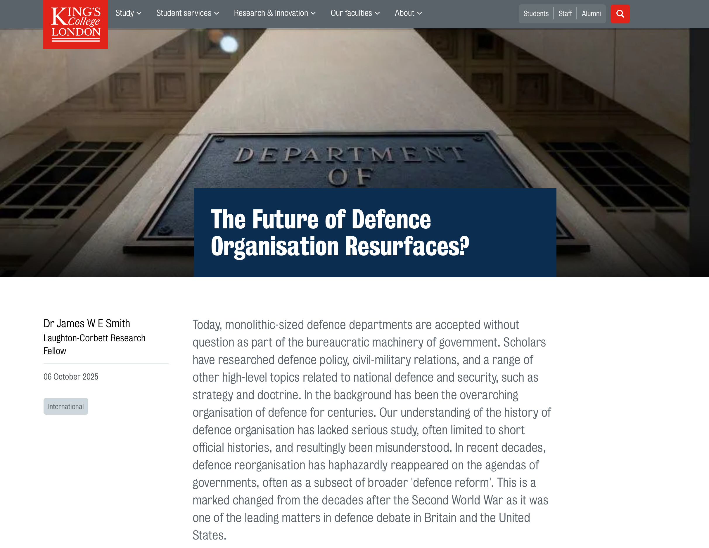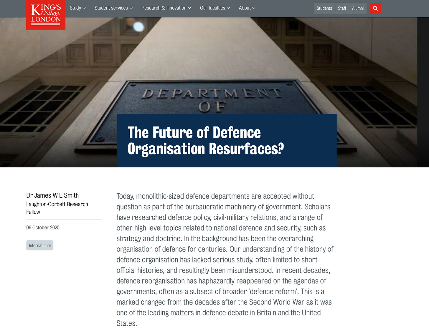 Original article: https://www.kcl.ac.uk/the-future-of-defence-organisation-resurfaces , 6 Oct 2025.